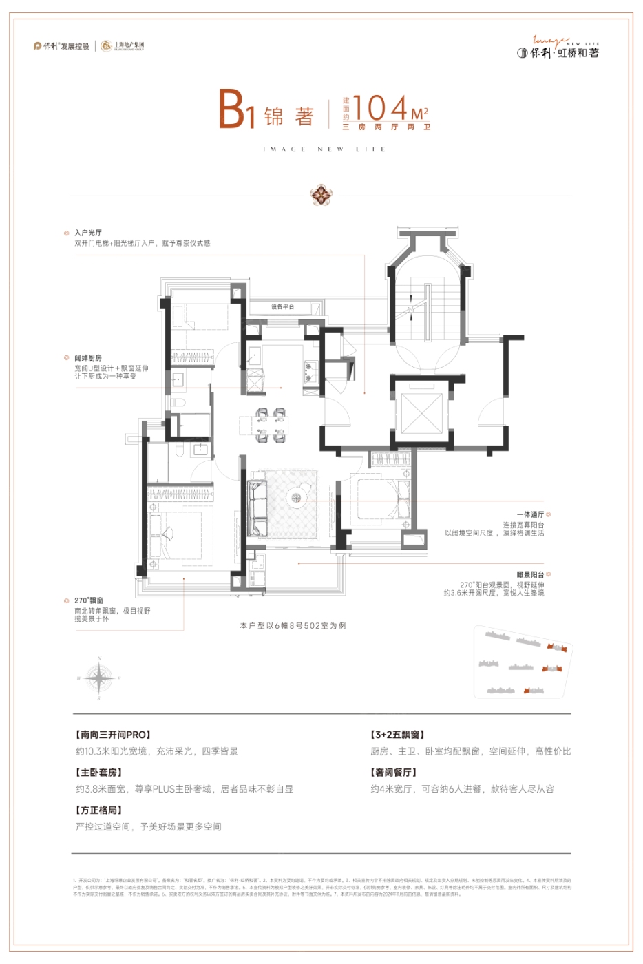 3室2厅1厨2卫 建面104.00㎡