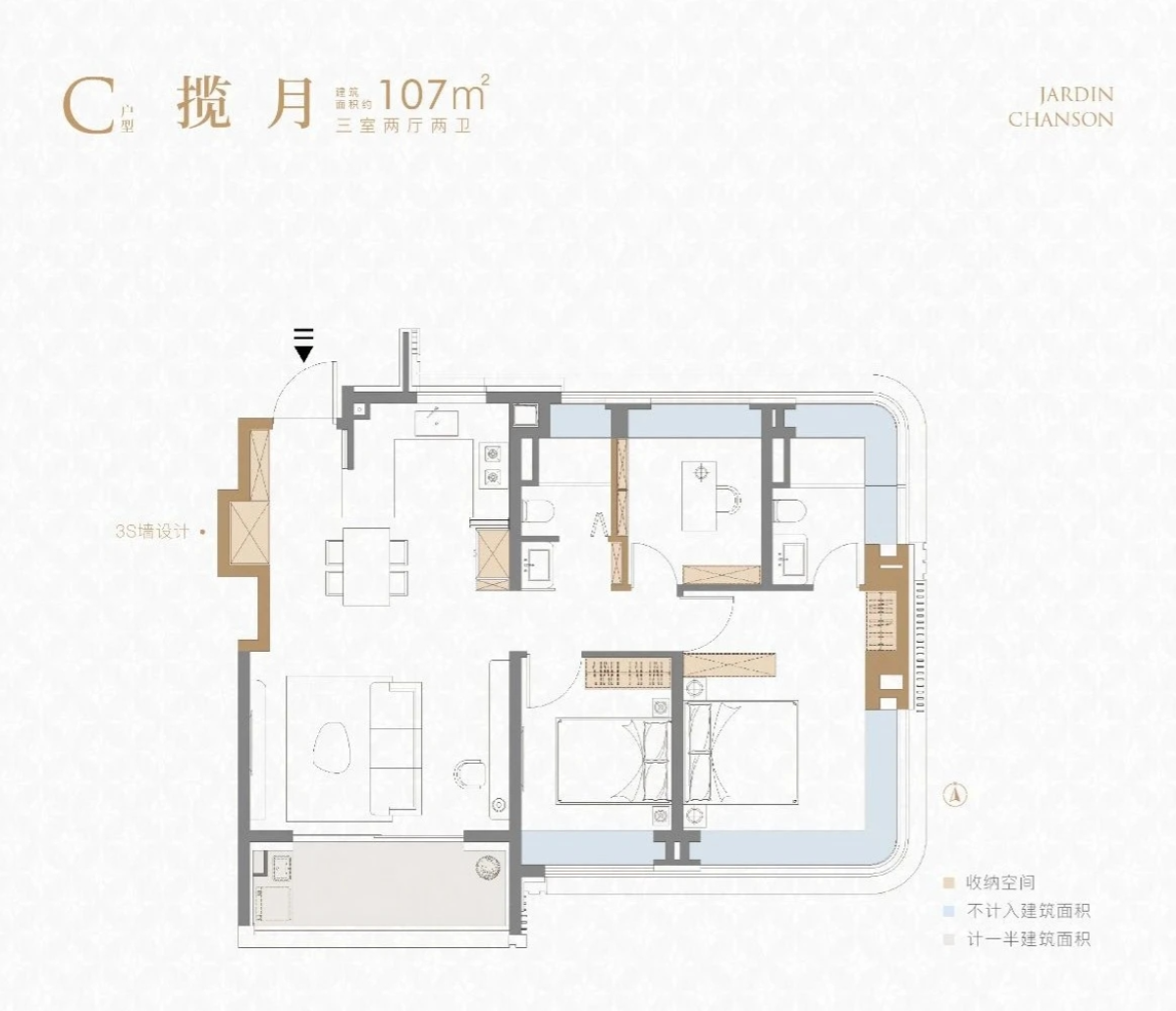 3室2厅0厨2卫 建面107.00㎡