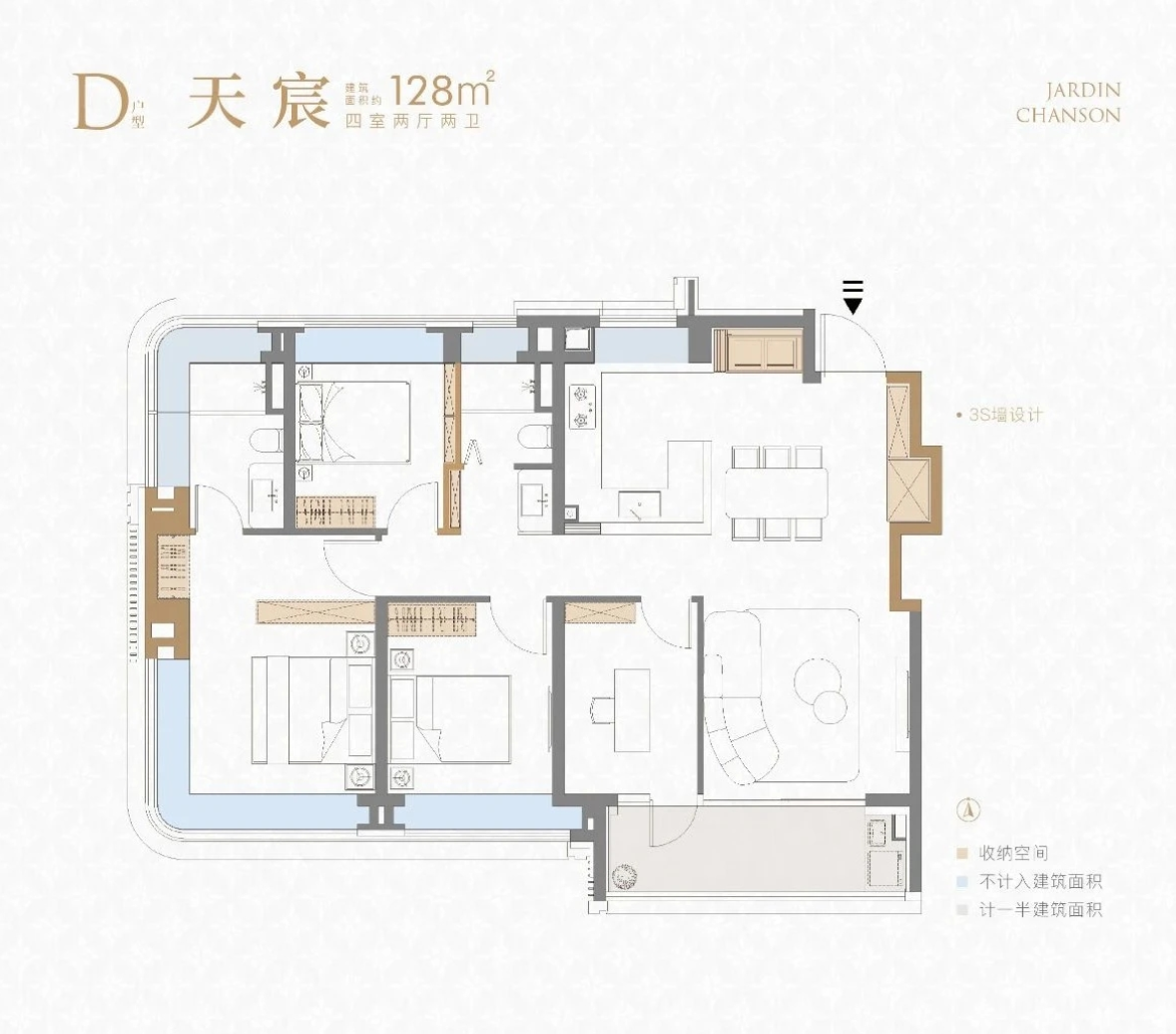 4室2厅1厨2卫 建面128.00㎡