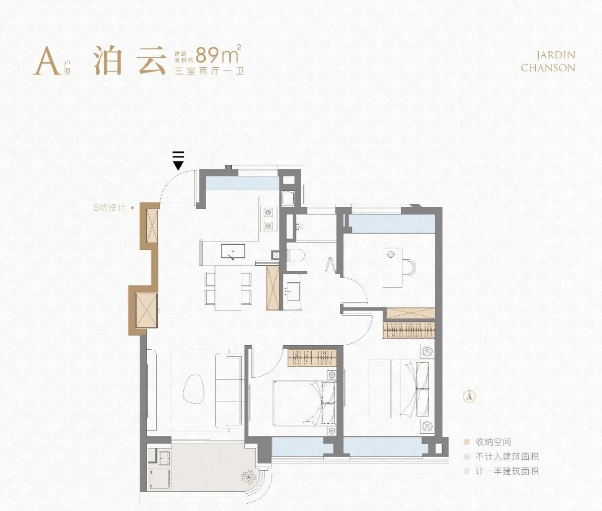 3室2厅1厨1卫 建面89.00㎡