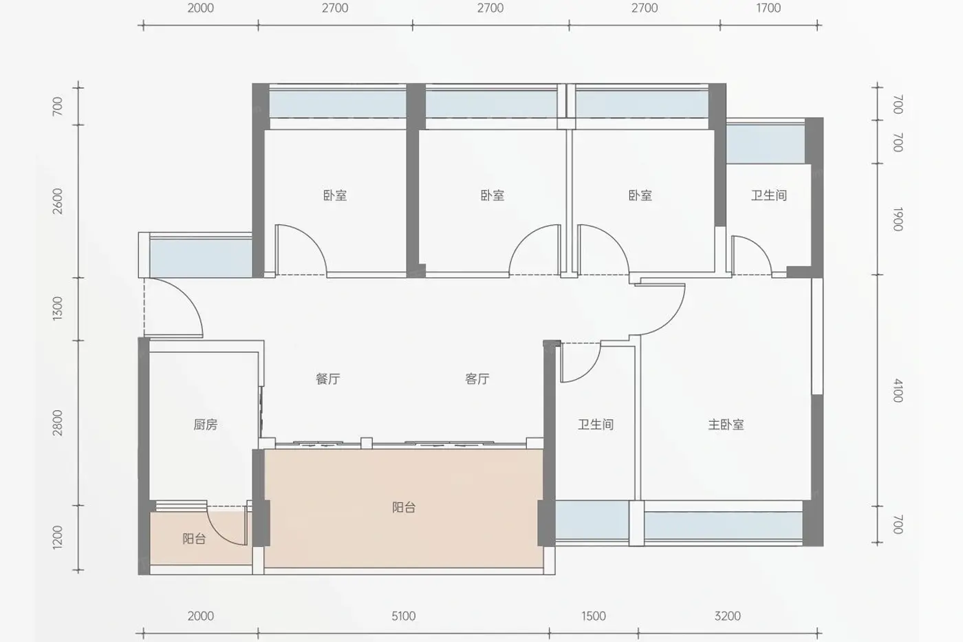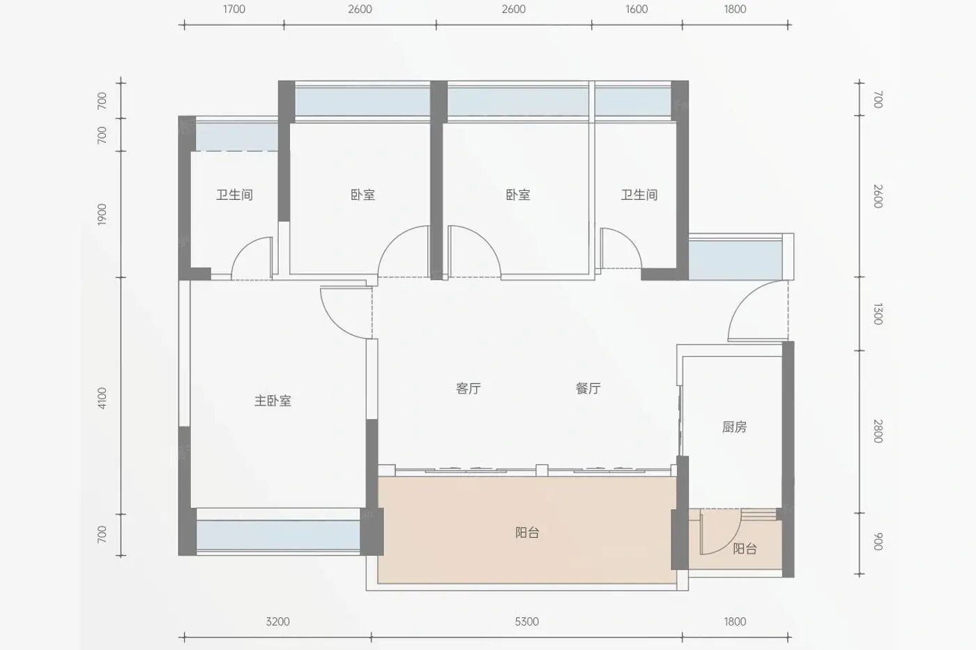 4室2厅1厨2卫 建面100.00㎡