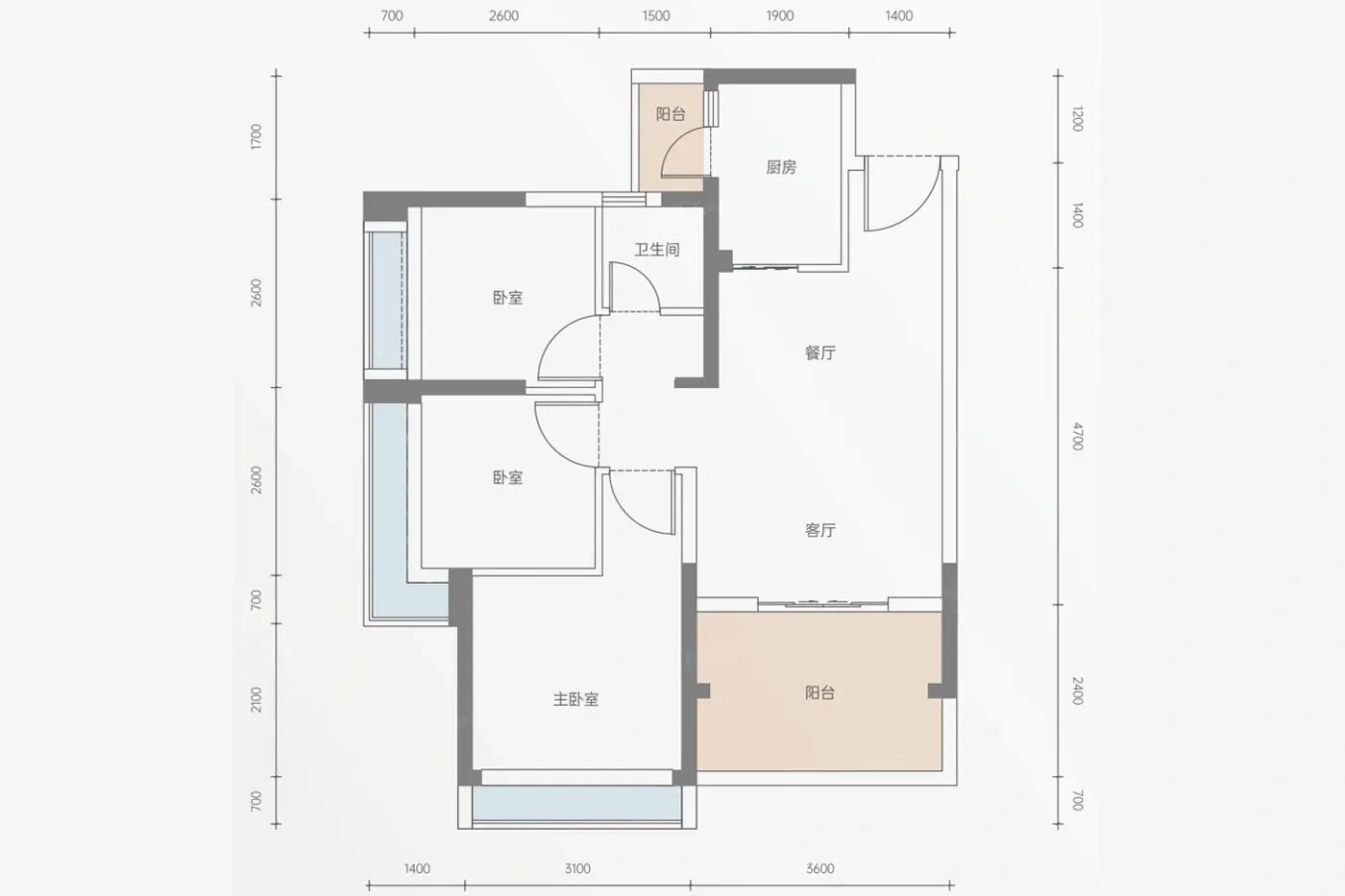 3室2厅1厨1卫 建面79.00㎡