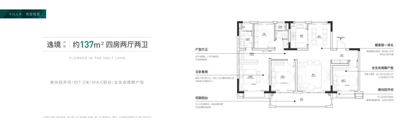 这个盘有四种户型,面积从105到137平不等,选择挺多。楼与楼之间的距离合理,采光没问题,住起来比较舒服。